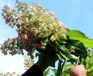 Once a majority of the wreath is full you can start adding accents to the wreath. In the hydrangea wreath I used sedum to fill an bare looking spaces. Sedum is a hardy fall flower that comes in pink or sometime purple tones. These accents will add a punch of color to your wreath and help your wreath to look more full. If you want something a little more festive, try tying ornamental corn to the bottom of your wreath or attaching miniature pumpkins to the wreath for a beautiful fall look!